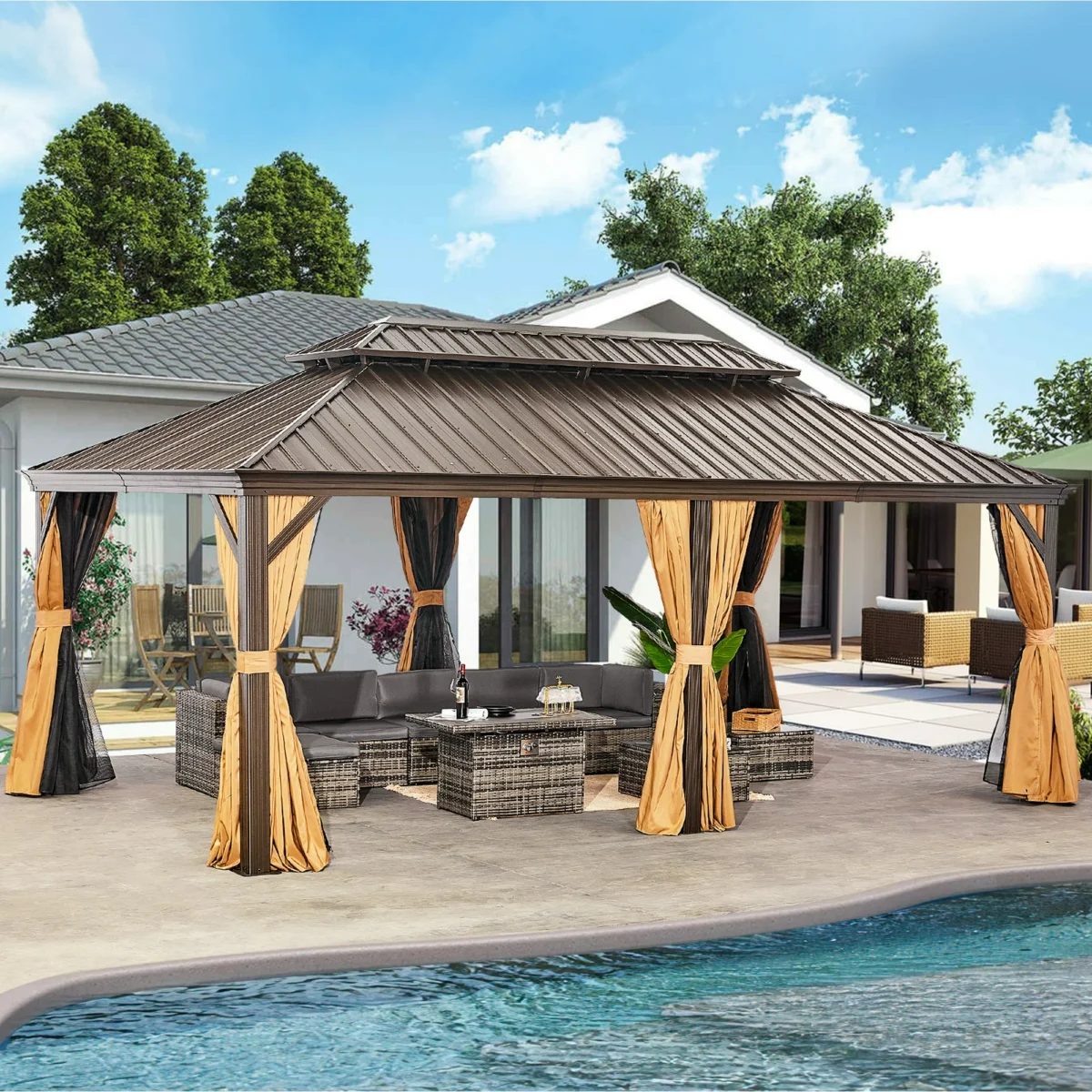 Sunmthink 12×20 ft Hardtop Gazebo with Double Roof