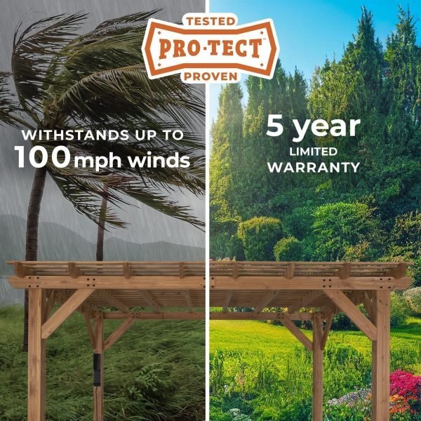 It provides ample flexibility for any outdoor setting with a wide canopy and a greater number of purlins for more shade. Plus, our exclusive PowerPort™ lets you transform it into the ultimate hub for cozy outdoor gatherings. And to top it off, it’s PRO-TECT™ Tested and Proven to withstand winds up to 100 mph*.