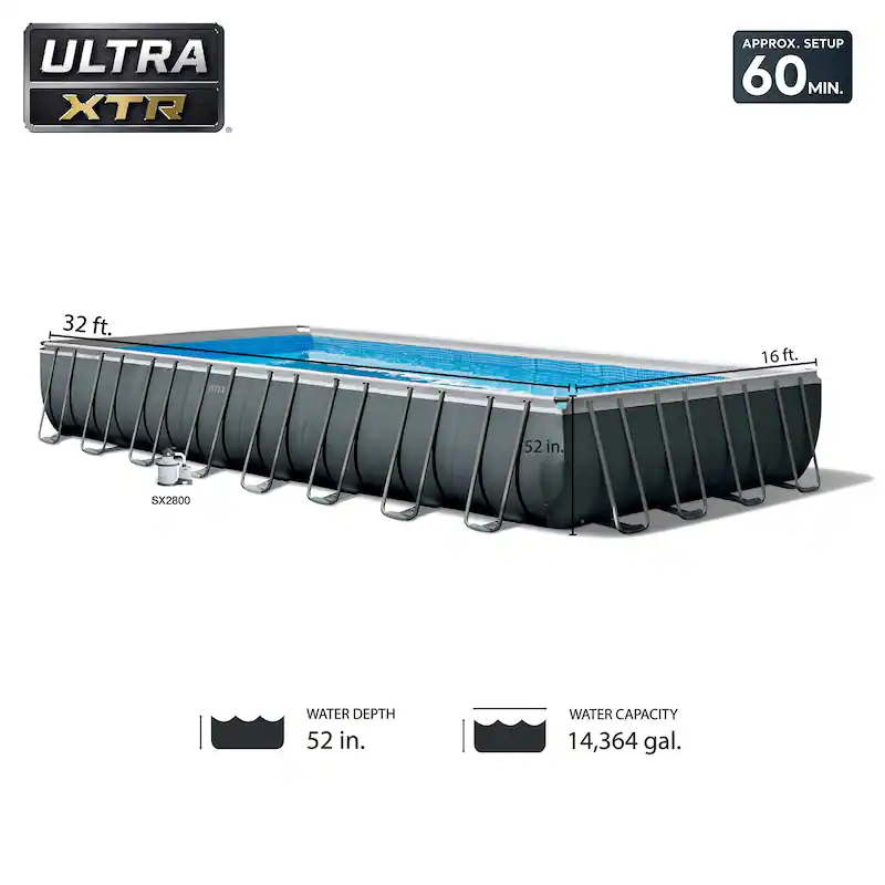 Intex 32′ x 16′ x 52″ Rectangular Ultra XTR Frame Above Ground Swimming Pool Set – 32 ft x 16 ft x 52 in