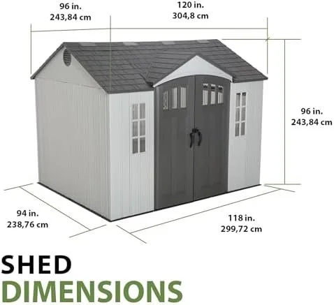 • Spacious Storage Capacity: 10 ft. W x 8 ft. D layout offers ample room for outdoor tools, equipment, and supplies