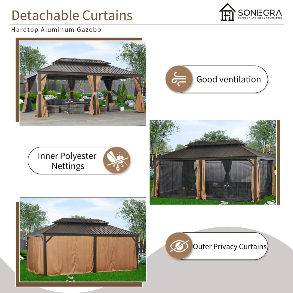 Sunmthink 12×20 ft Hardtop Gazebo with Double Roof