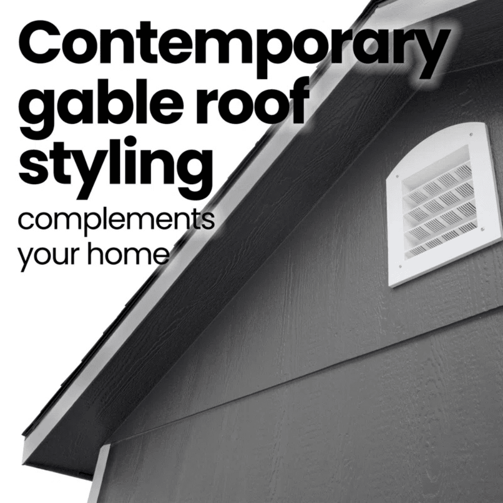 The Handy Home Windemere 10×12 Storage Shed is a spacious and stylish outdoor structure, designed for storage, workshops, or creative studios. Featuring extended architectural roof overhangs and a dormer, it blends functionality with contemporary aesthetics, making it a standout addition to any backyard.