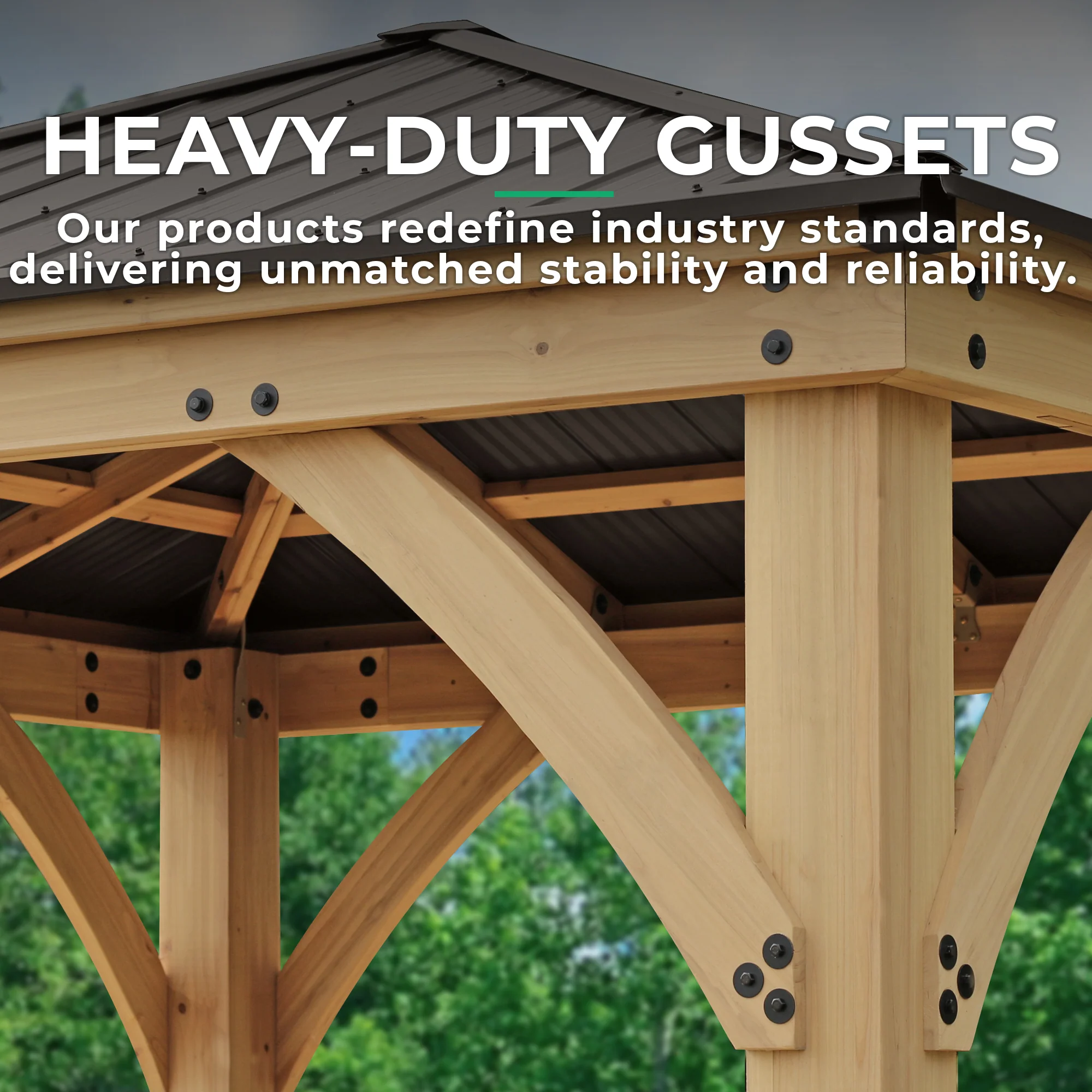 Structural integrity is built into every connection point of the Meridian, with heavy-duty curved corner gussets adding significant strength and stability to the frame, and massive 6×6 cedar posts anchoring the entire structure with the kind of solid, planted feel that distinguishes a well-engineered gazebo from a lighter-duty alternative. The 144 square feet of covered space comfortably accommodates a full outdoor dining set, lounge furniture arrangement, or outdoor kitchen setup, and Yardistry’s augmented reality tool allows buyers to place a 3D model of the gazebo directly in their outdoor space using a mobile device before purchasing, making it easy to visualize the fit and scale with existing furniture and landscaping.